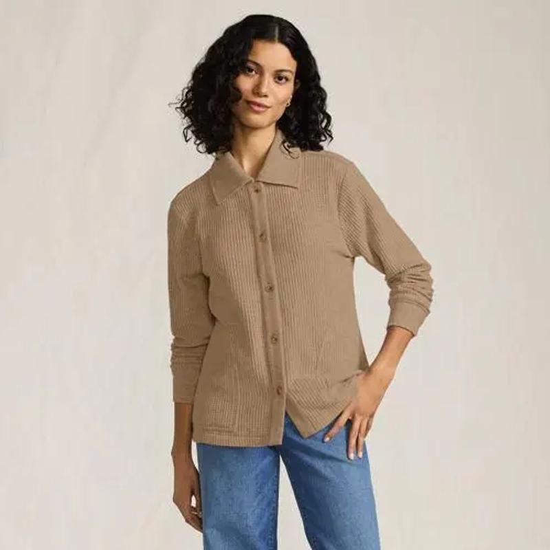 Baumwollmix-Jacke im Waffelstrick, Damen, Braun, Baumwoll-Mischung/Polyester-Mischung, by Lands' End