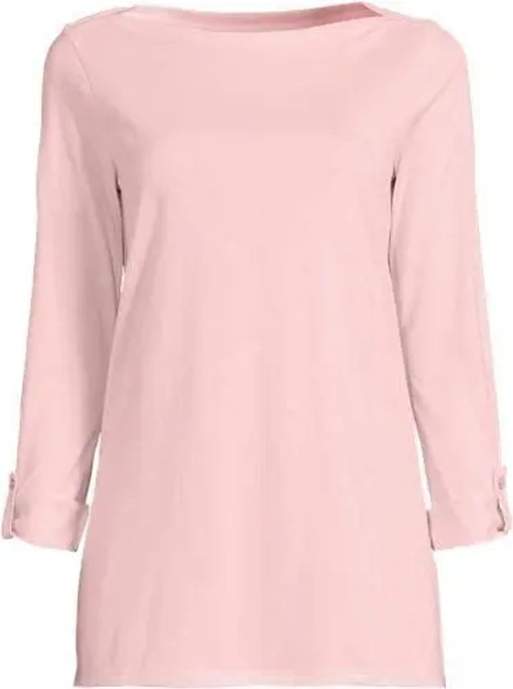 Langes Supima-Shirt mit U-Boot-Ausschnitt, Damen, Pink, Baumwolle, by Lands' End