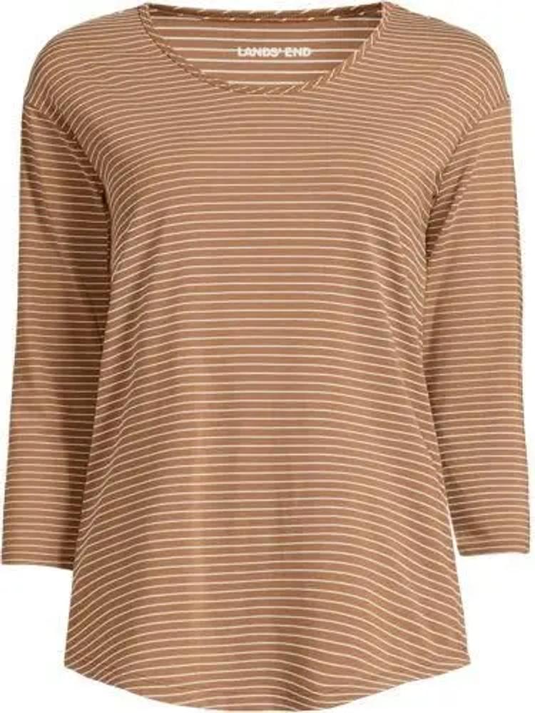 Fließendes Shirt mit Ballettausschnitt, Damen, Beige, Baumwoll-Mischung/Baumwolle Modal, by Lands' End