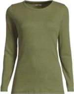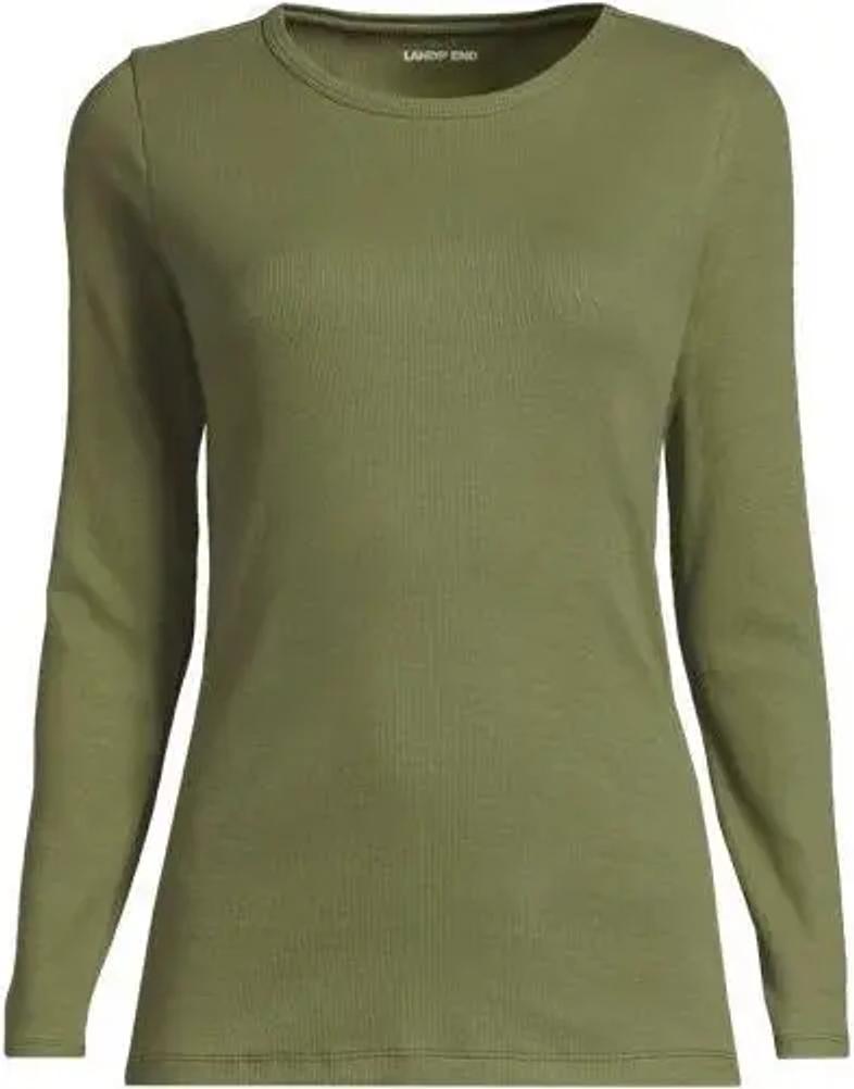 Langarmshirt aus mikrofeinem Baumwollripp, Damen, Grün, Baumwolle/Elasthan, by Lands' End
