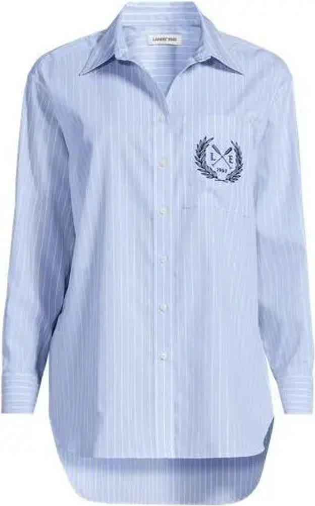 Lange weite Bügelfrei-Bluse, Damen, Blau, Baumwolle, by Lands' End