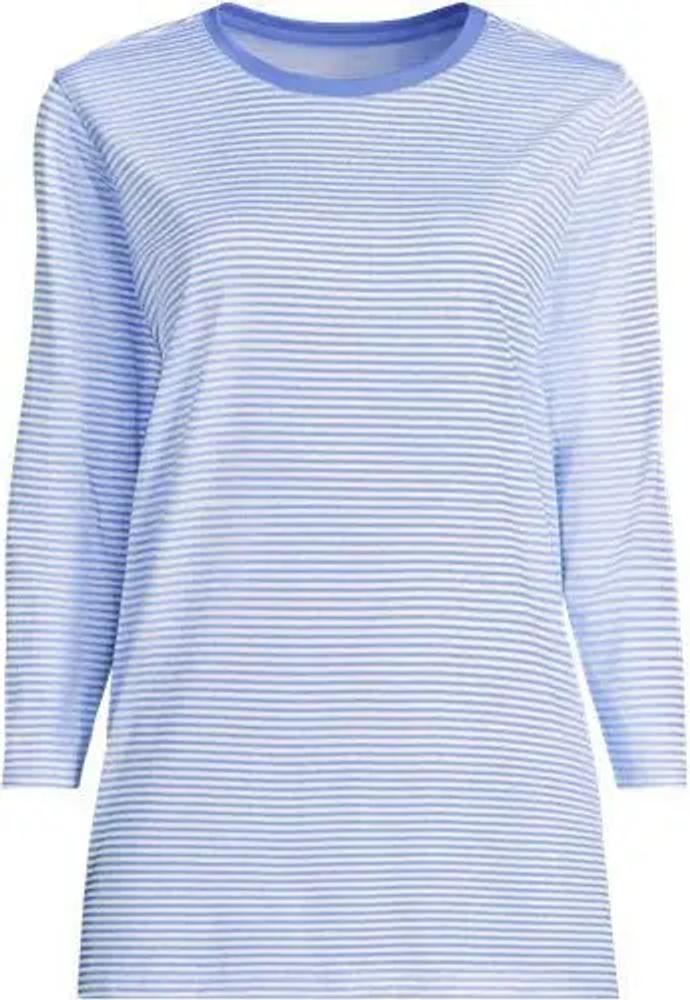 Supima-Shirt mit 3/4-Ärmeln, Damen, Blau, Baumwolle, by Lands' End