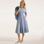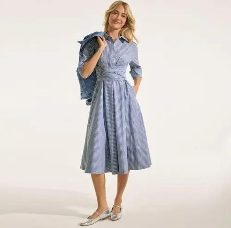 Baumwoll-Midikleid in Wickeloptik, Damen, Blau, Baumwolle, by Lands' End