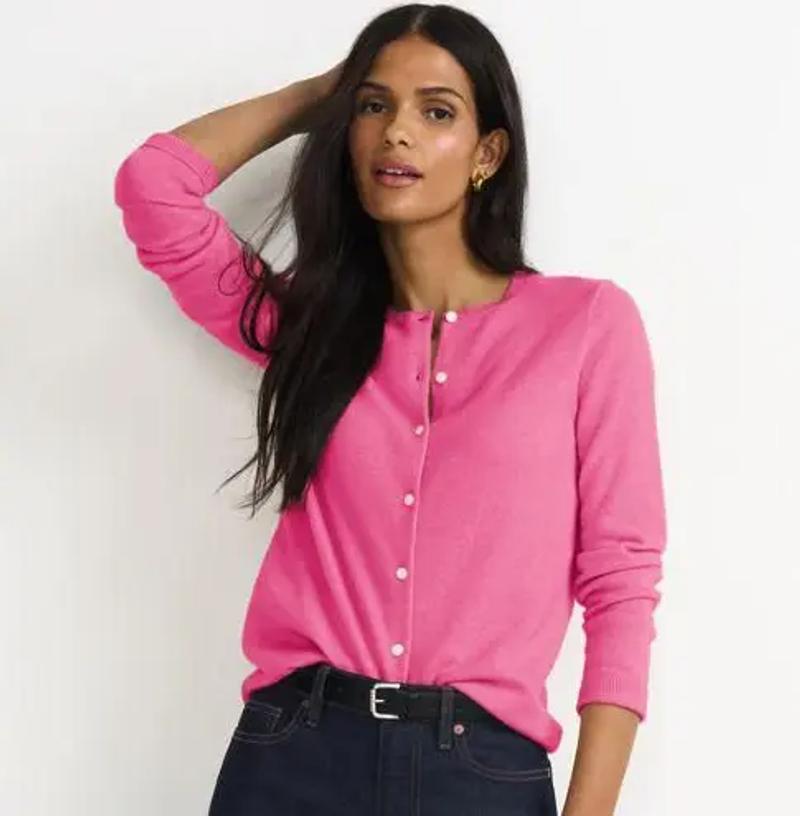Kaschmir-Cardigan mit rundem Ausschnitt, Damen, Pink, Kaschmir, by Lands' End