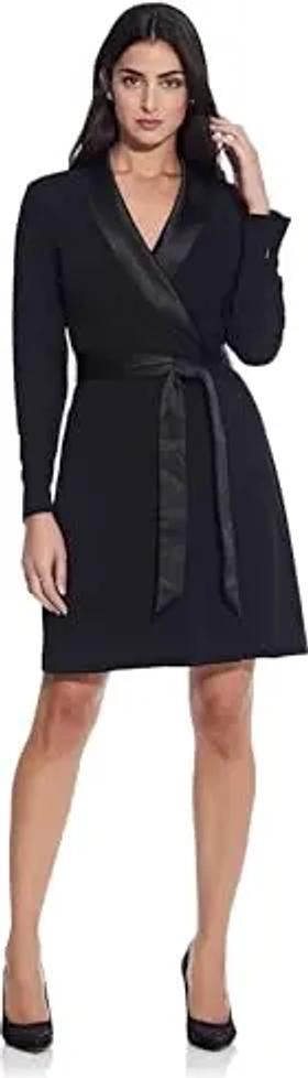 Adrianna Papell Damen Strickkleid aus Krepp, A-Linie Kleid, Schwarz, 44
