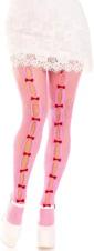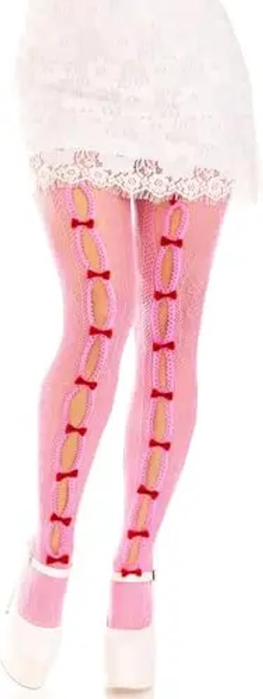 LEG AVENUE Damen Gestreifte Netzstrumpfhose mit Schlüsselloch und Mini-Schleifendetail Strumpfhose, Pink, Einheitsgre