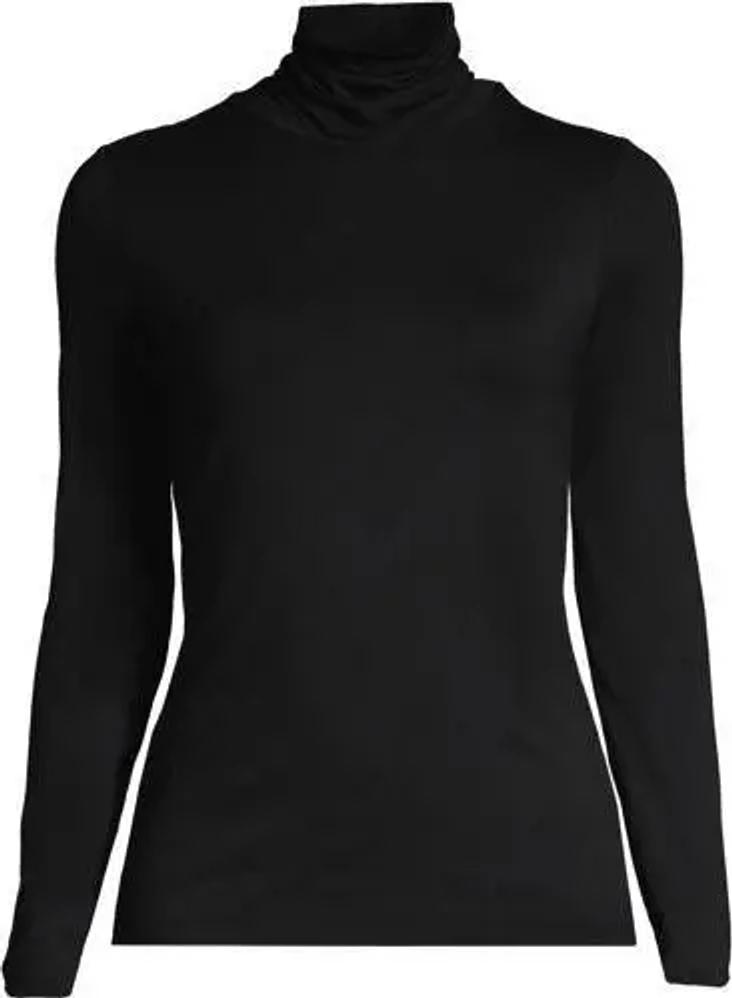 Rollkragenshirt aus Baumwoll/Modalmix, Damen, Schwarz, Baumwolle/Elasthan/Baumwolle Modal, by Lands' End