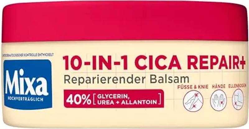 Mixa Urea Balsam, mit 40% Glycerin, Urea und Allatoin, reparierend, feuchtigkeitsspendend, für sehr trockene, rissige Haut an Ellenbogen, Knie, Füßen & Händen, 10 in 1 Urea Cica Repair+, 150ml