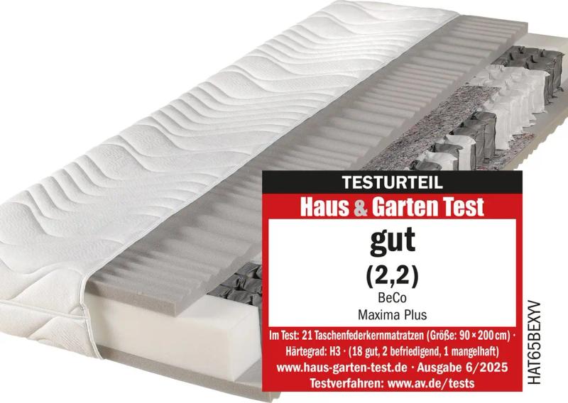 Taschenfederkernmatratze Maxima Plus, Matratze in 90x200 und vielen weiteren Größen erhältlich!, Beco, 22 cm hoch, Matratze, 7 Zonen, 90x200 cm in H3 von Stiftung Warentest "GUT (1,8)"