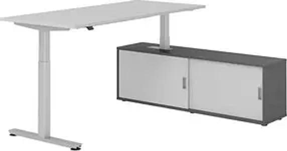 HAMMERBACHER VXMST19SB elektrisch höhenverstellbarer Schreibtisch lichtgrau rechteckig, T-Fuß-Gestell silber 180,0 x 80,0 cm