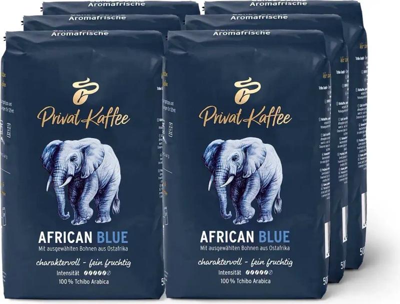 Tchibo - Privat Kaffee African Blue - 6 x 500 g Ganze Bohne - Intensität: 5/6