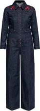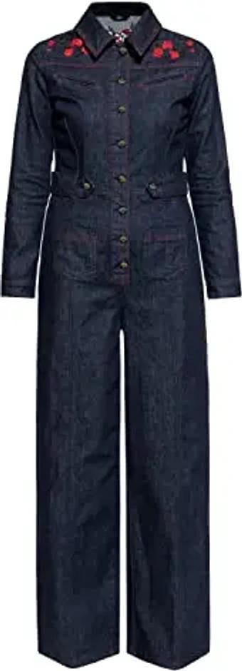 Queen Kerosin Damen Langarm Jeans Overall Denim Overall Florale Stickerei Rosen Roses Jeans Einteiler Boot-Cut Roses