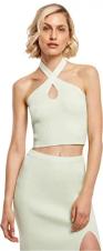 Urban Classics Damen Ladies Rib Knit Crossed Neckholder Top T-Shirt, lightmint, XXL