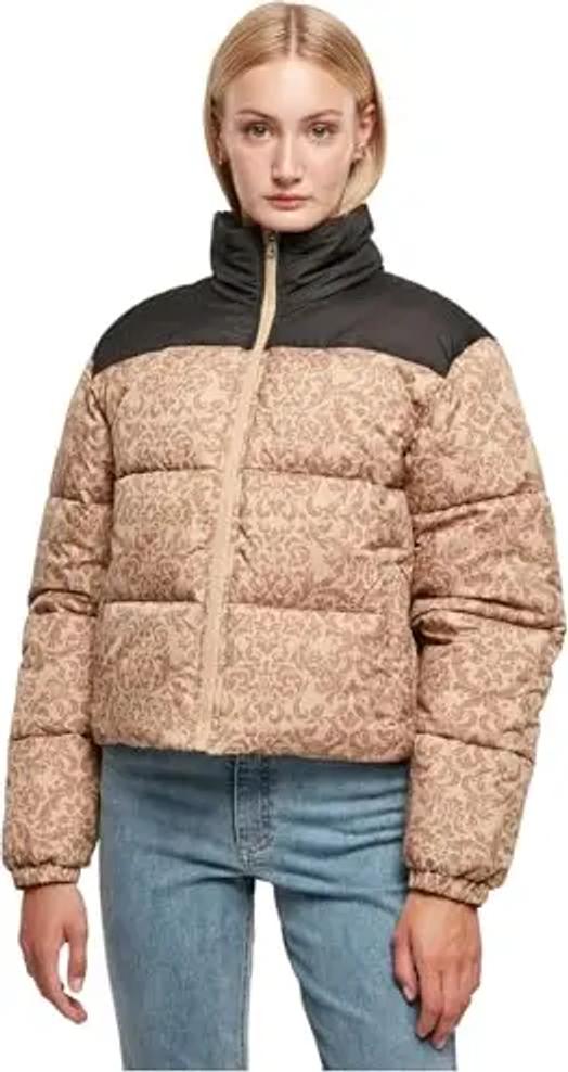 Urban Classics Damen Jacke Ladies AOP Retro Puffer Jacket unionbeigedamast XL