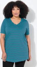 Ulla Popken Longshirt Streifen A-Linie V-Ausschnitt Halbarm