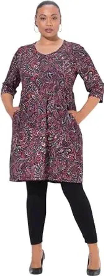 Ulla Popken Damen große Größen Übergrößen Plus Size Longshirt, Paisley, A-Linie, V-Ausschnitt, 3/4-Arm schwarz 54+ 842809100-54+