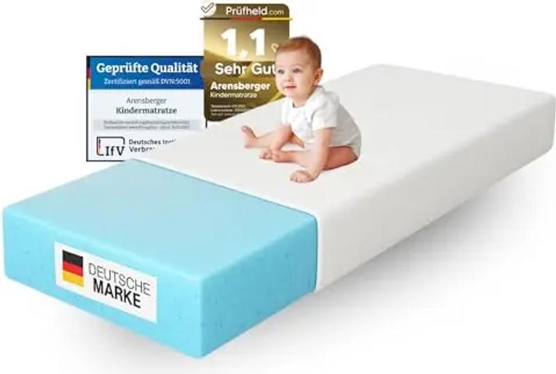 Arensberger Kindermatratze Babymatratze Nora | 70x140cm Höhe 12cm | Bezug waschbar & abnehmbar | punktelastischer Gelschaum | Jugend-matratze, allergiker freundlich Premium Bezug | Öko-Tex zertifizert