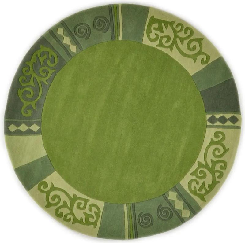 THEKO Wollteppich "Ambadi" rund 14 mm Höhe reine Schurwolle, handgetuftet, mit Bordüre, modern