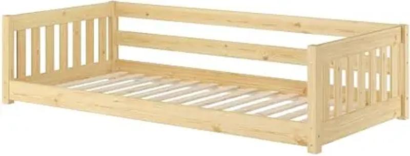 Erst-Holz®Niedriges Kinderbett Bodenbett 90x200 Kiefer massiv Zubehör wählbar V-60.28-09Rollrost inkl