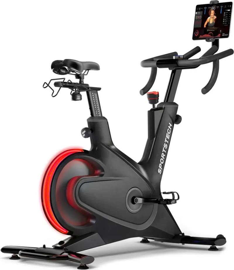 Sportstech Speedbike sBike Lite, Fitnessbike, mit stabilem Rahmen, geräuscharmem Pedalsystem und präziser Widerstandseinstellung, 7 Farben LEDs