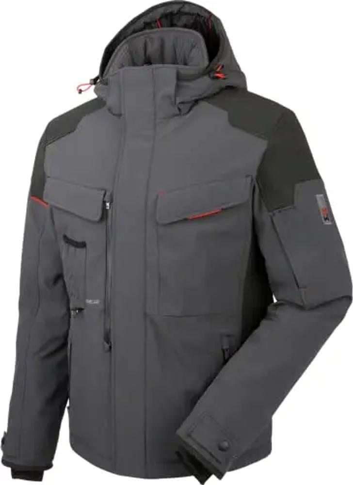 WÜRTH MODYF Winter Softshelljacke One – hochwertige Arbeitsjacke für kalte Arbeitstage in den Größen S – wasserabweisend (8.000 mm WS) mit abnehmbarer Kapuze – in grau