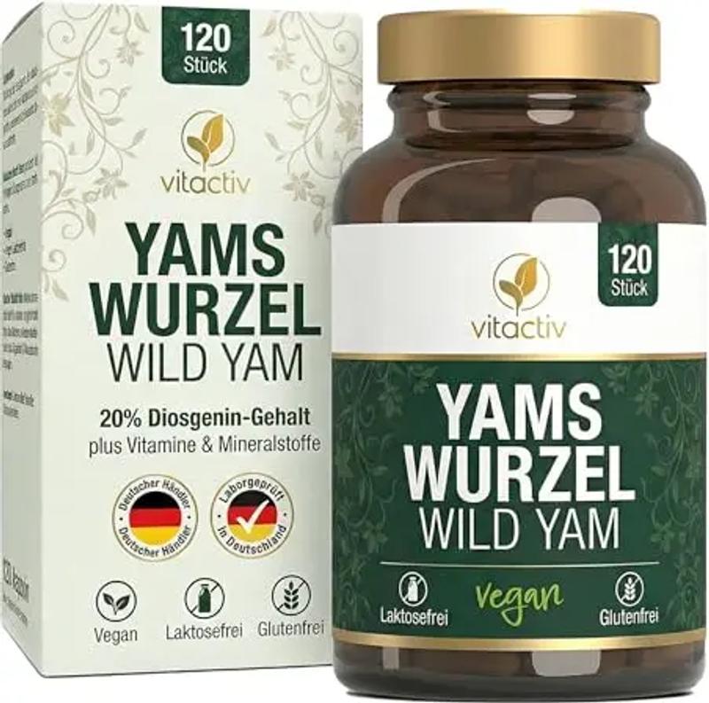 VITACTIV Yams Wurzel, Wild Yam - 120 Kapseln (2 Monatspack) - 880mg Yamswurzel-Extrakt pro Tagedosis, 20% bzw. 176mg Diosgenin - Für körpereigenen DHEA-Spiegel, bei Menopause (Wechseljahren)