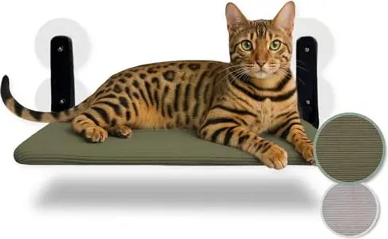 Schwebende Katzenfensterliege – Klappbare & platzsparende Katzenliege mit Saugnäpfen I Wendbare Hängematte für Fenster I Katzenbett bis 20 kg für Sonnenplatz & Panorama-Aussicht (Grün, Groß)