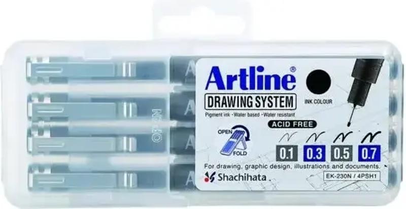 Artline 4er-Pack Fineliner »Drawing System« 0,1 - 0,7 mm grau