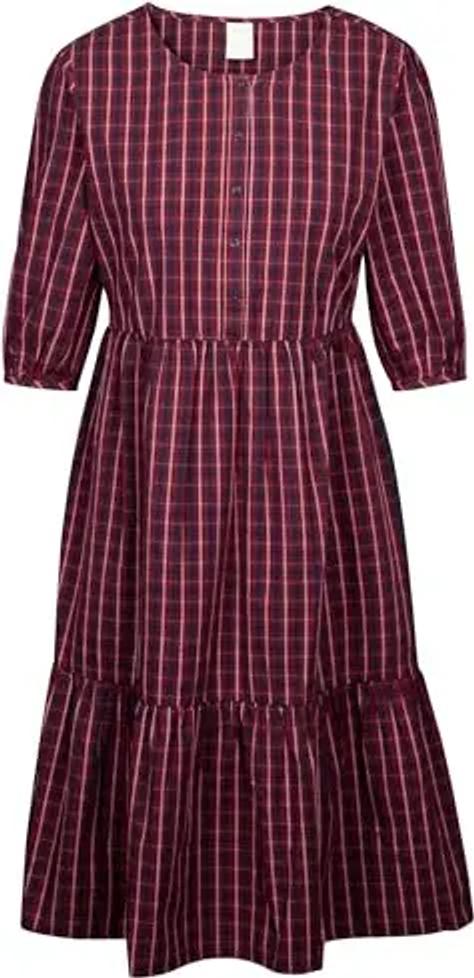 Trespass Lidia Damen-Sommerkleid, Rundhalsausschnitt, 3/4-Ärmel, Karomuster, Dunkelkirschfliesen, Small