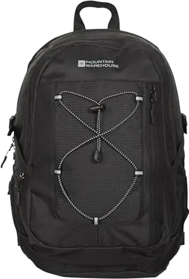 Mountain Warehouse Peregrine Rucksack - 30 Liter - Airmesh-Rücken, Flaschen- und Laptopfächer, Organisationsfach vorne, Ripstop - Für ganzjähriges Reisen, Festivals, Herbst Schwarz Einheitsgröße
