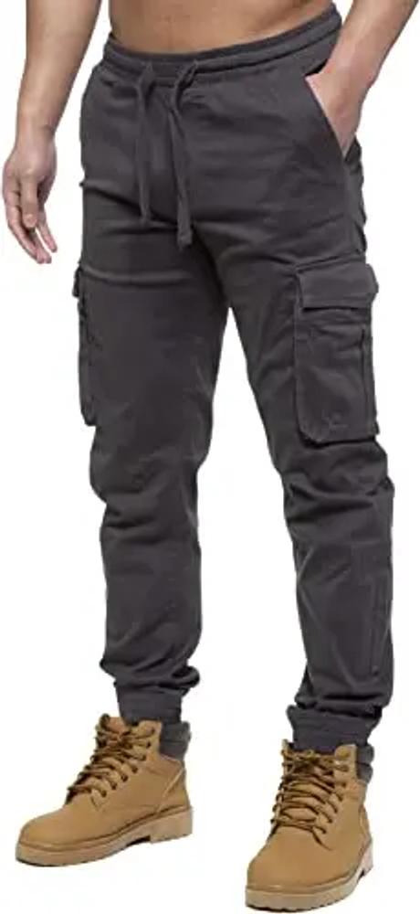 989Zé ENZO Herren Cargo Combat Jeans Elastische Taille Bündchen Hose Jogger, grau, 94