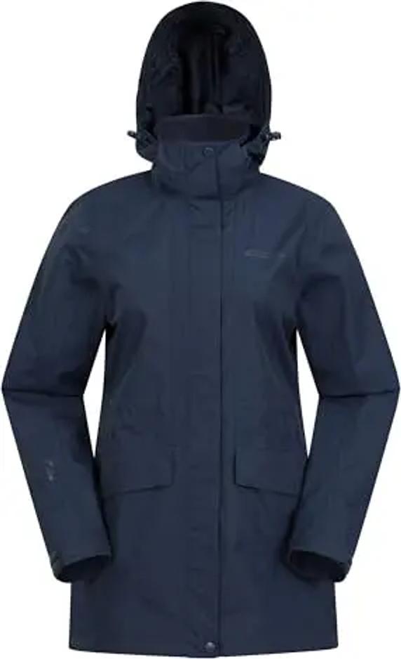 Mountain Warehouse Glacial wasserdichte Damenjacke - warme, atmungsaktive Freizeit-Regenjacke, versiegelte Nähte, abnehmbare Kapuze - Wanderkleidung, Frühling, Sommer Marine Damengröße EU 34