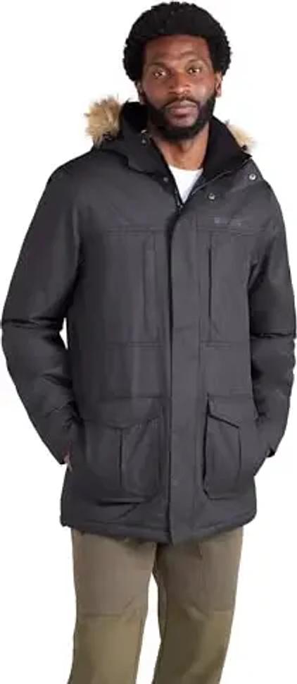 Mountain Warehouse Gorge Herren-Langjacke - Winter-Regenjacke, wasserdicht, atmungsaktiv, leicht, Kunstpelz-Kapuze, praktische, warme Jacke - für kaltes Winterwetter Schwarz Medium