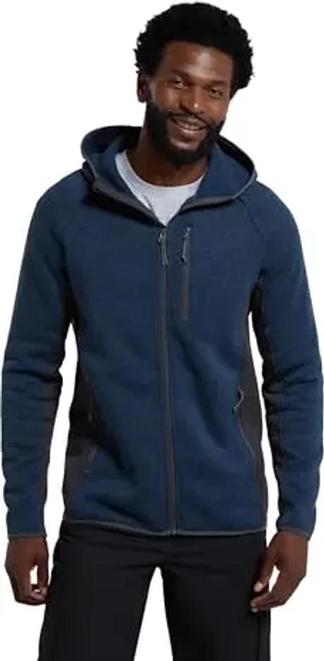 Mountain Warehouse Herren-Pullover mit Kapuze aus Fleece - Anti-Fussel-Gewebe, Sweatshirt mit Stretch-Einsätzen - Ideal zum Campen, Reisen, Wandern und im Freien, Marine Medium