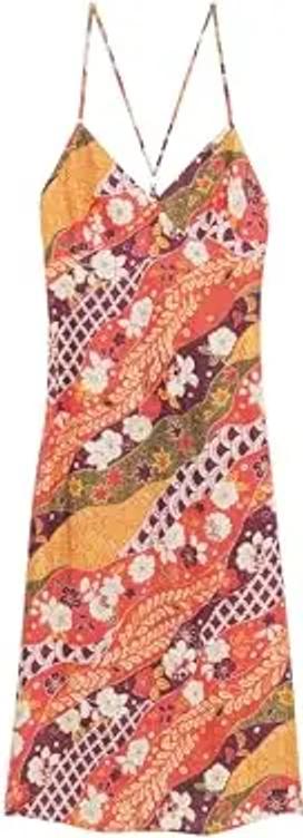 Superdry Damen Bedrucktes Midi-Trägerkleid Neonrot Michinaga 38