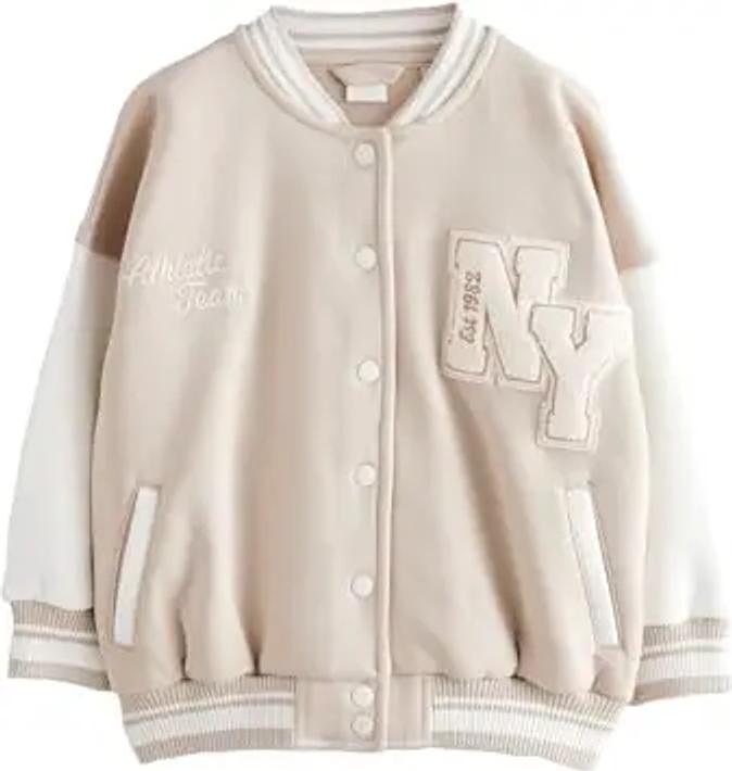NEXT Mädchen Standard Bestickte Varsity-Jacke Beige Boucle 122