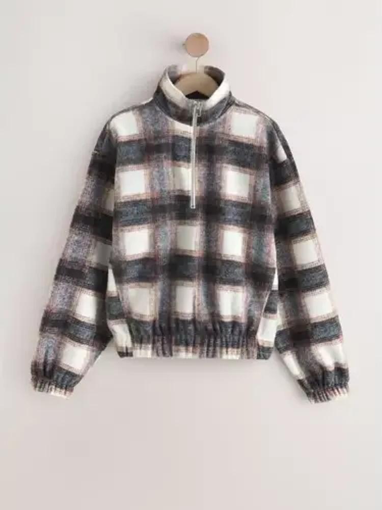 Next Ecru Check Soft Brushed Zip Funnel Neck Teddy Fleece Jacket damen