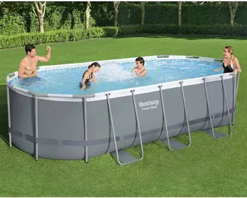 Bestway Power Steel Aufstellpool Oval 549x274x122 cm Silber