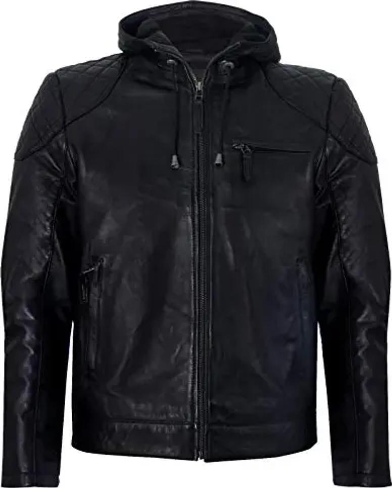 Infinity Leather Herren Schwarz Jahrgang Beiläufig Reißverschluss 100% Leder Bomberjacke Mit Kapuze Bikerjacke XS