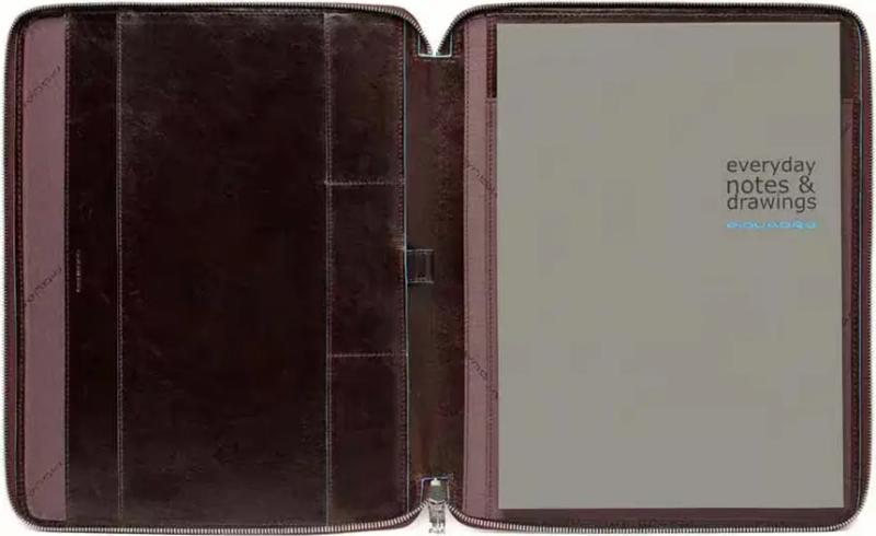Piquadro Blue Square Schmale Schreibmappe aus Leder im A4-Format mit Reißverschluss und Stiftschlaufe Mahagoni