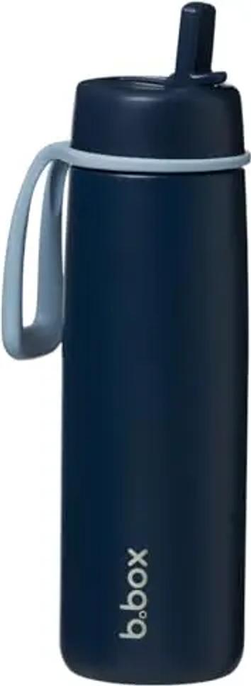 b.box isolierte Trinkflasche mit Klappdeckel, dreilagiger Edelstahl, hält Getränke bis zu 44 Stunden kalt, auslaufsicherer Deckel mit Edelstahl-Strohhalm, ideal für Reisen und Sport, BPA-frei, 690 ml
